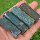 About Material Moss agate is a semi-precious gemstone formed from silicon dioxide. It is a form of chalcedony which includes minerals of a green color embedded in the stone, forming filaments and other patterns suggestive of moss.[1] The field is a clear or milky-white quartz, and the included minerals are mainly oxides of manganese or iron. It is not a true form of agate, because it does not have concentric banding.